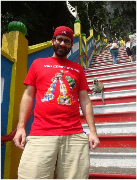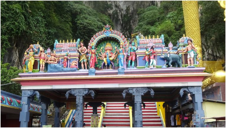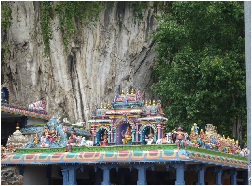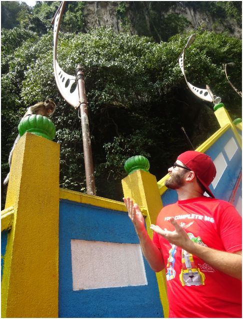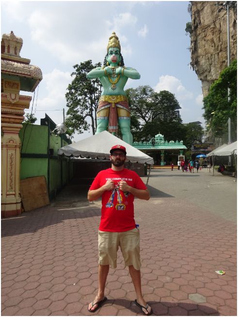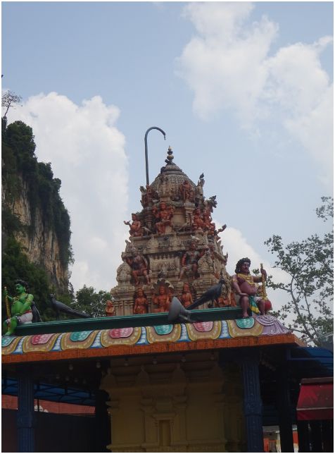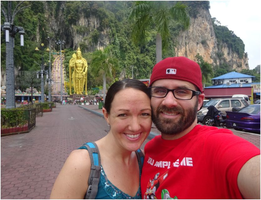 After a few days of catching up with friends and relaxing in Kuala Lumpur, we decided it was time for some sight-seeing on our own. It was a hot, sunny day as we ventured out to Batu Caves, about 13 km north of Kuala Lumpur. The caves were formed out of limestone hills and since then have been made into one of the most popular Hindu shrines outside of India. The large golden statue that stands 140 feet tall outside of the caves is a representation of the lord Murugan.