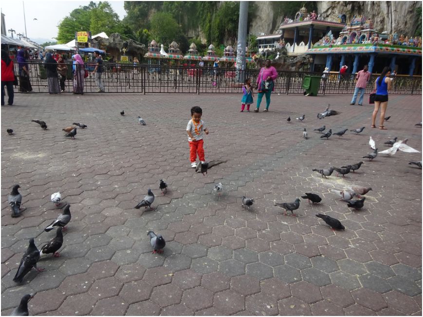 We lingered about outside the caves for a while, looking in and out of souvenir shops, and watching people feed and chase the pigeons away. We wandered down towards the subway and saw some more statues and decorations, as well as some natural beauty. By then we were hot and hungry so we decided to head back into KL to visit the Petronas Towers!