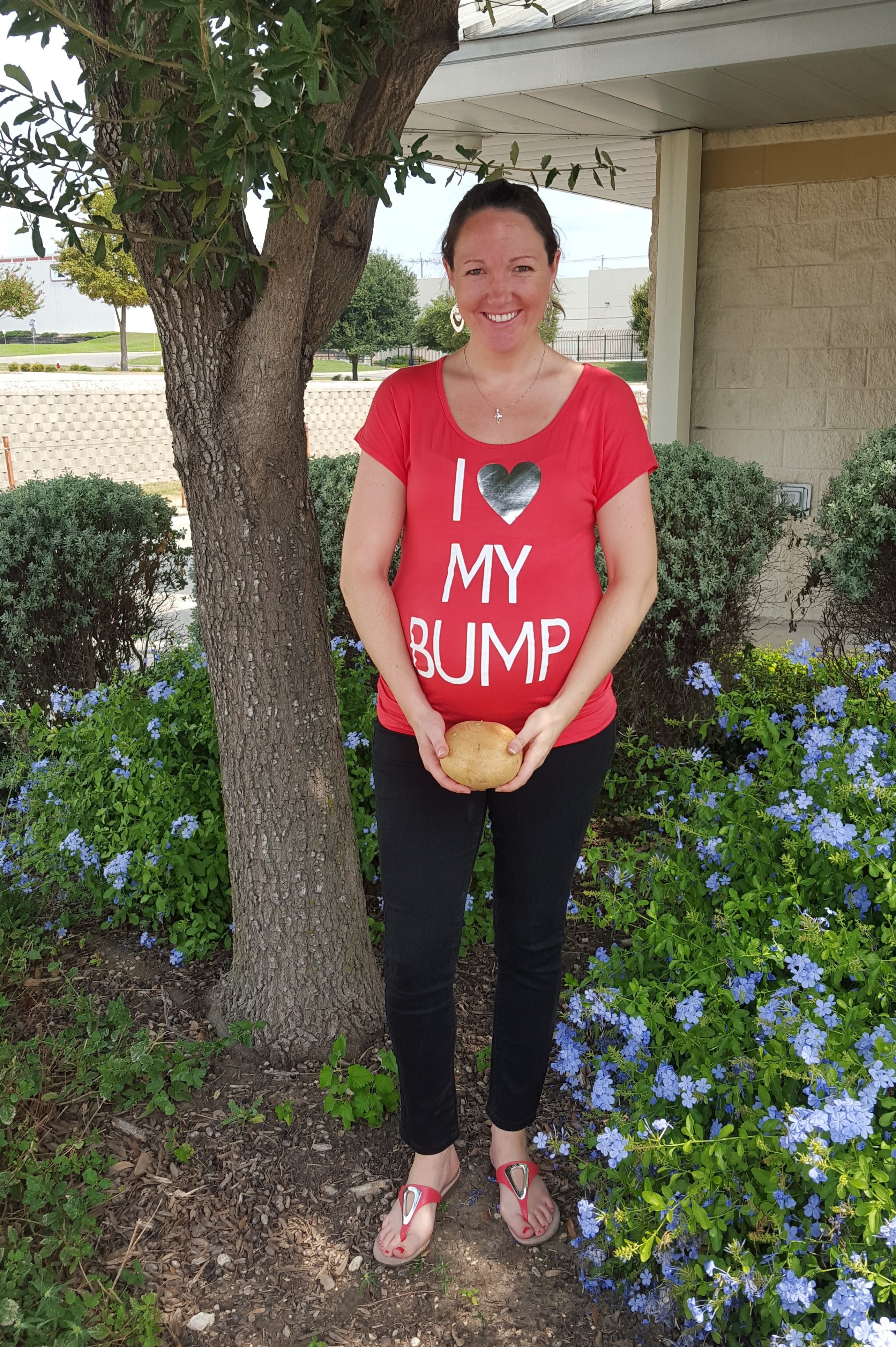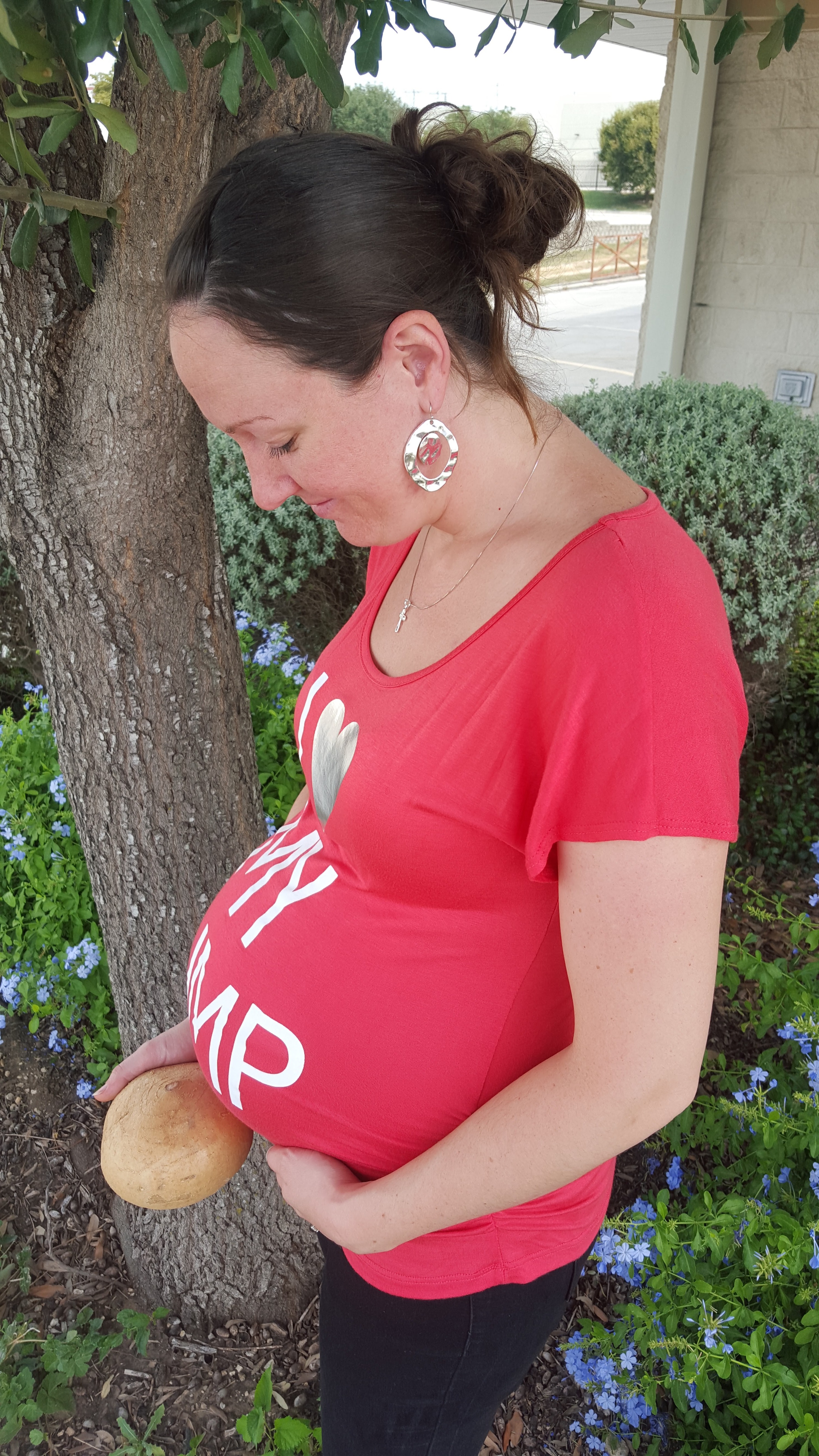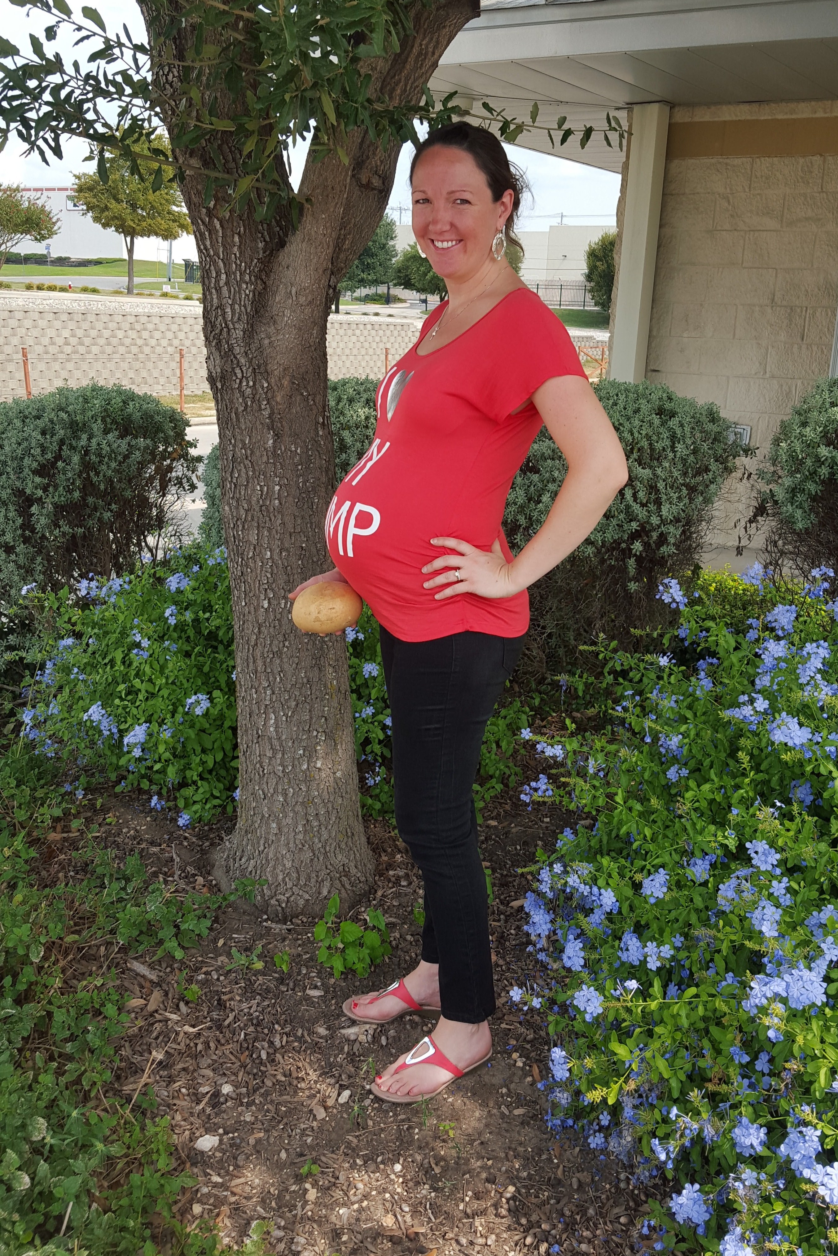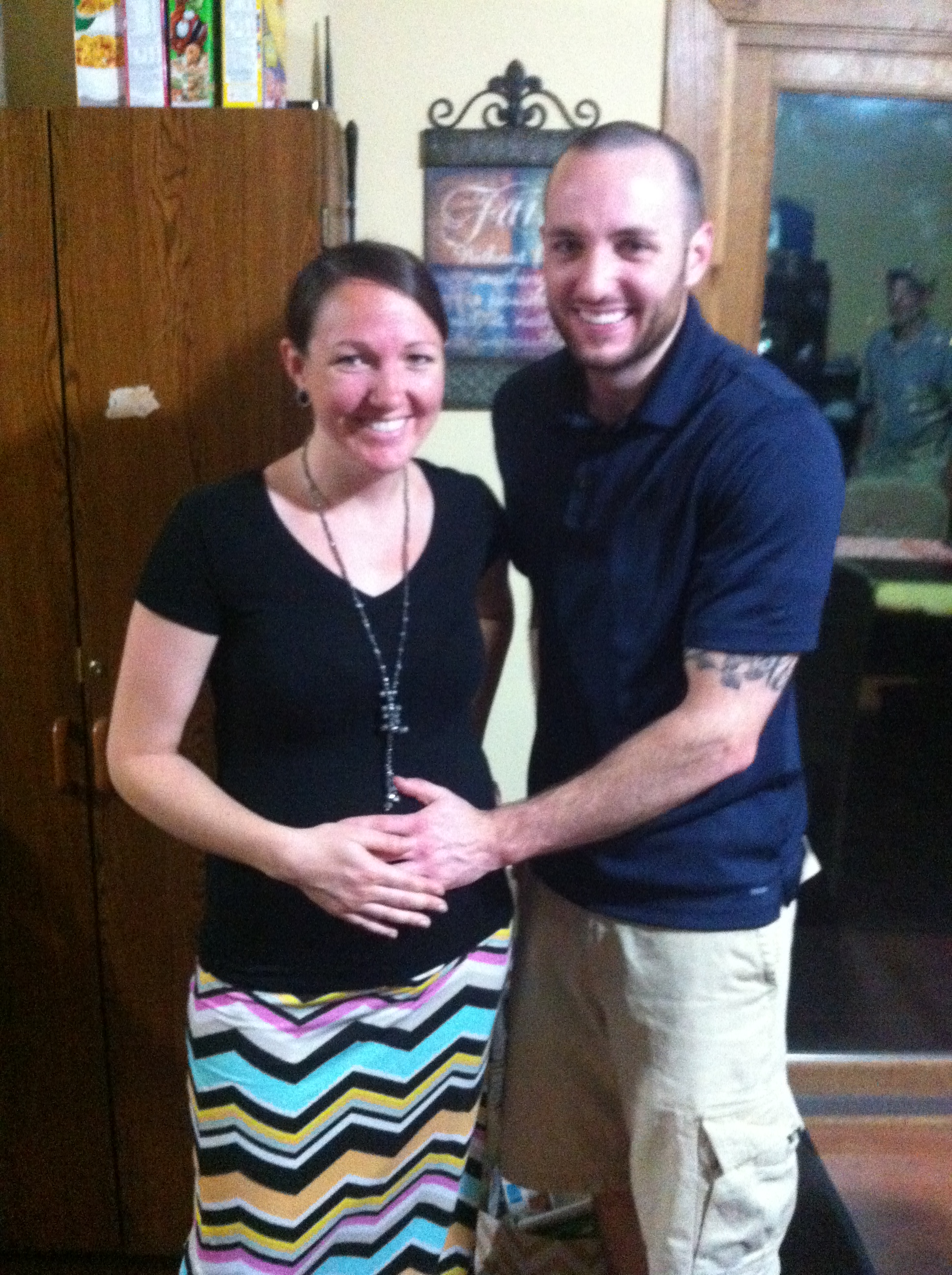 Anyone who read our last set of “bumpdates” knows that we received some news from our ultrasound technician that we might be further along in this pregnancy than we thought. We had to wait until mid-week to meet with our midwife to see what she thought about the results. When we did finally meet with her, she agreed that my due date should be moved up to November 1! She said that they will rarely move a due date from a late ultrasound, but because baby boy was measuring almost three weeks ahead, she said that it was significant enough to warrant a change. She looked at all of my fundal measurements from the all the past appointments I’ve had with her, and I measured about two weeks ahead each time, so she said that the ultrasound measurements mesh with her own. Our technician is also very experienced (over 30 years) and has a reputation for being within one or two ounces in predicting baby’s weight. SO… it looks like we are going to do a little “Time Hop” with our “Bumpdate” weeks.