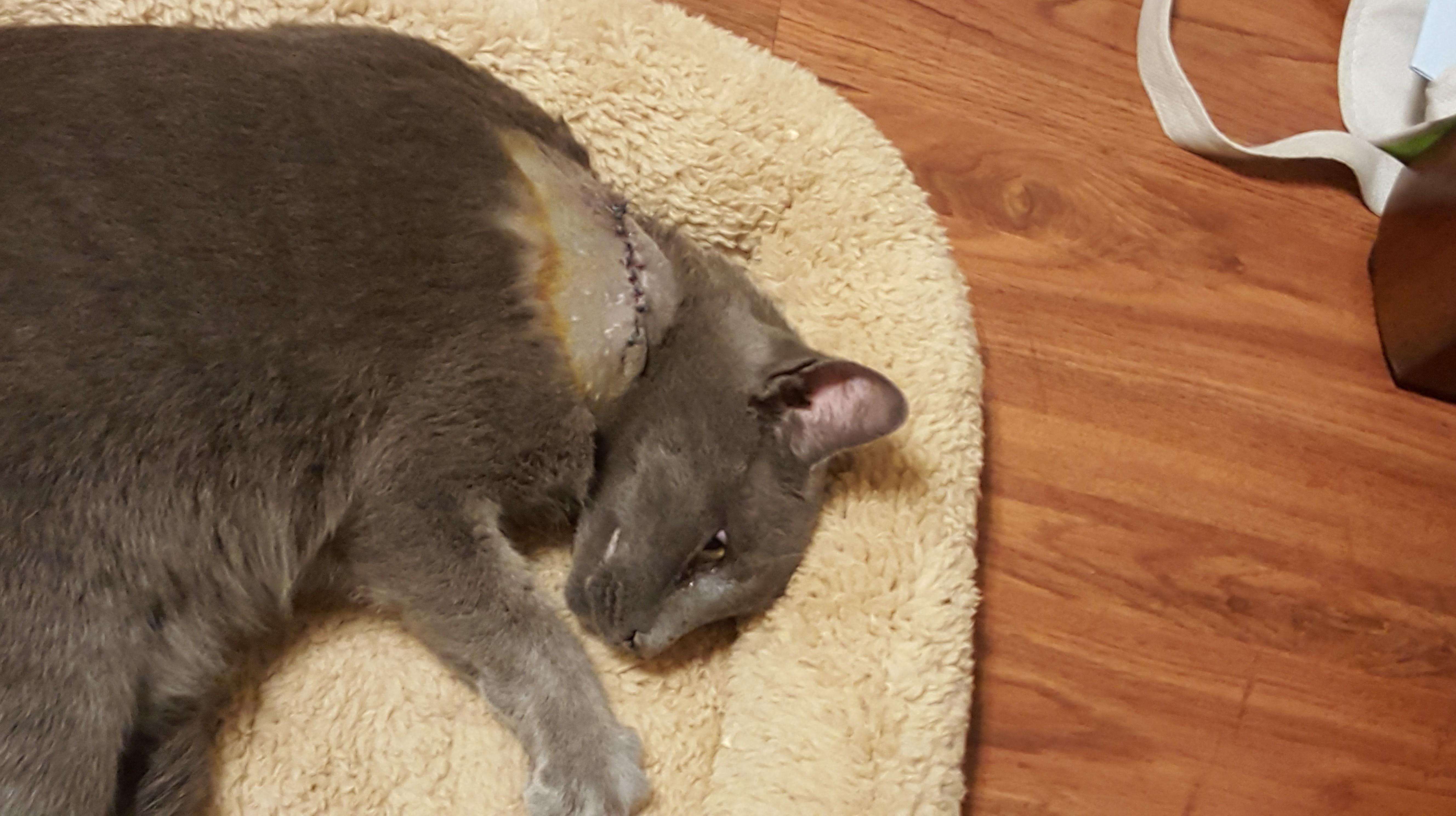 We had all sorts of things going on this week. Our poor kitty got a big wound that we noticed on Saturday, but not until the vet had already closed. It was about the size of a dime but by Sunday, it had not closed up and in fact had stretched to more the size of a quarter. We decided to keep a close eye on him to make sure that he didn’t start showing any signs of infection and waited until the vet opened on Monday to set up an appointment to take him in (emergency clinics are hella expensive!!!).