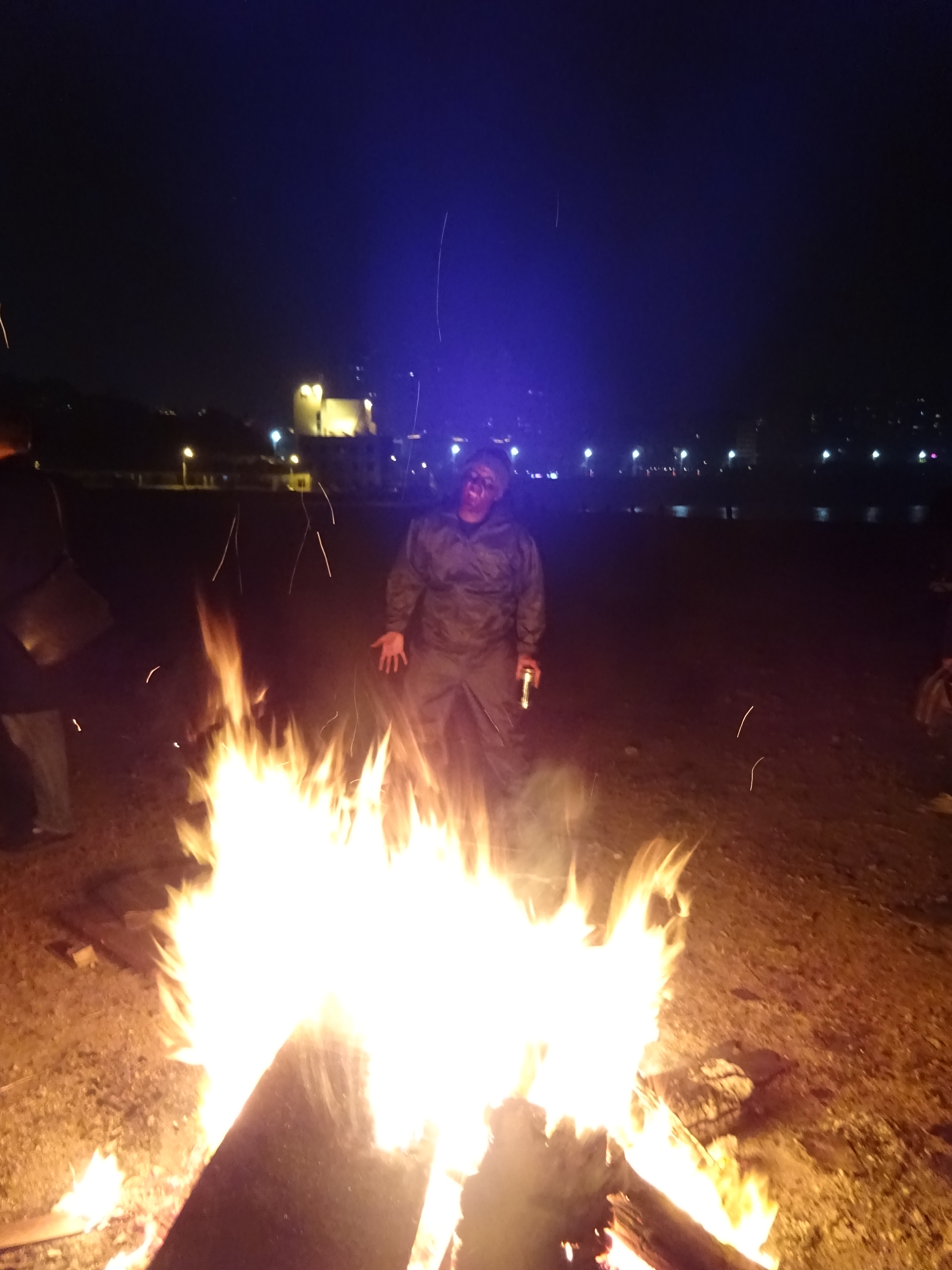There was also a gentleman there who was “couch surfing” in Qingdao, just for the night. He came to the bonfire equipped with his accordion and after a short speech introducing himself and where he was from (France, I think), began playing us some tunes.