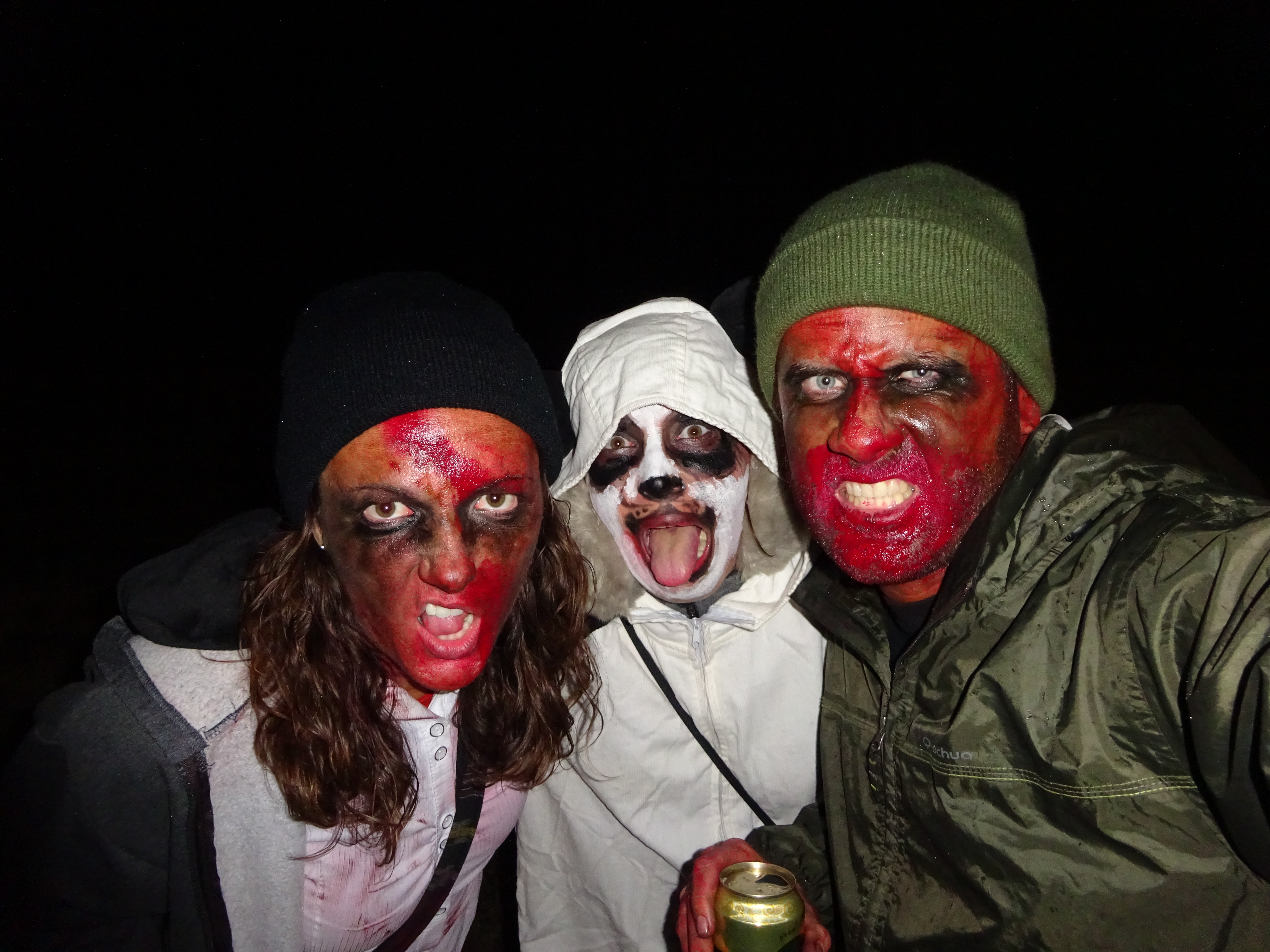It was kind of a nasty, misty night, but thankfully there wasn’t too much rain to deter the actual fire. We mingled with the other “zombies” and hung out by the fire. There were some pretty epic costumes- even a zombie panda (who ended up being a friend of ours from church, but we had no clue until we saw her the next morning).