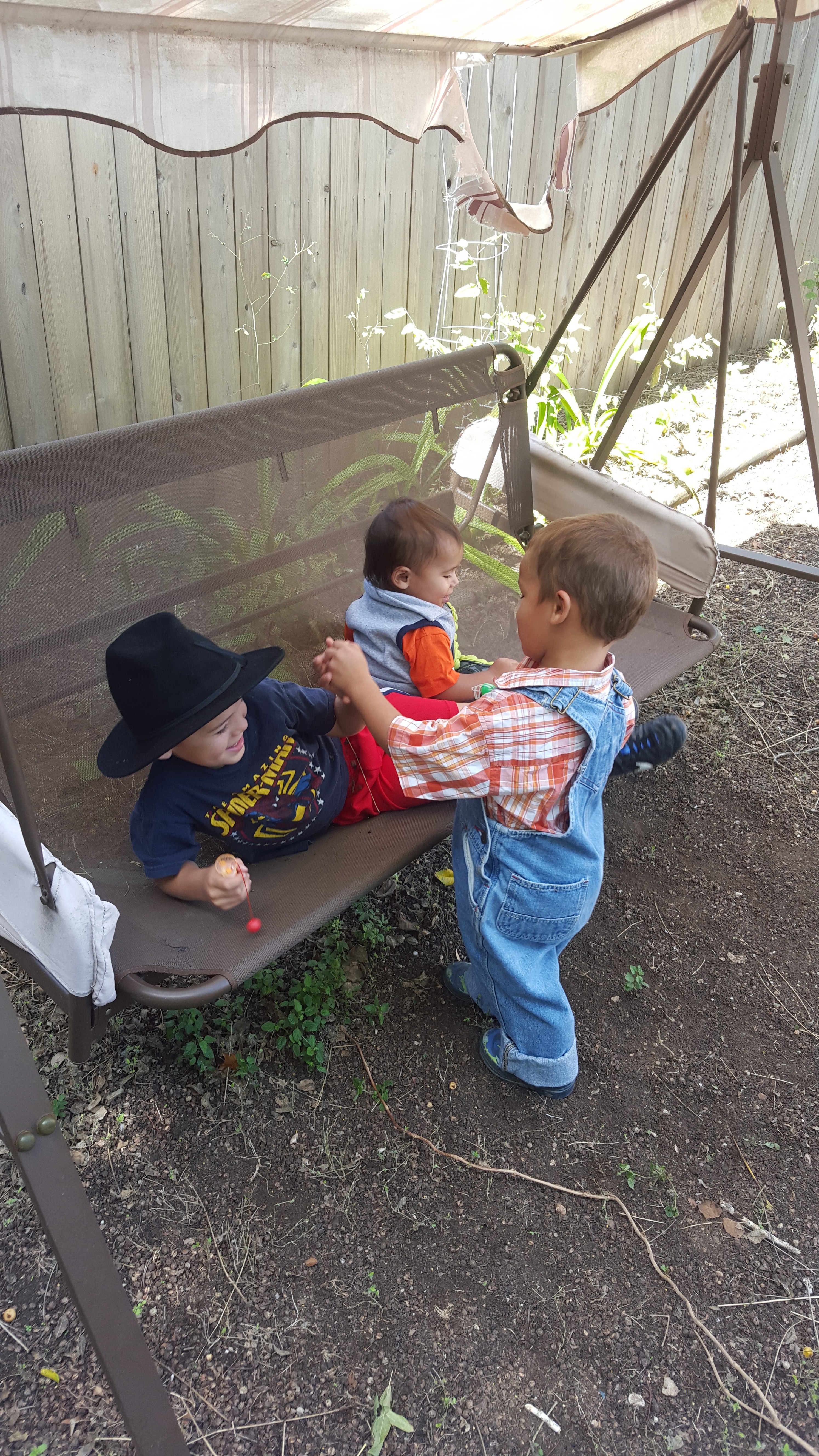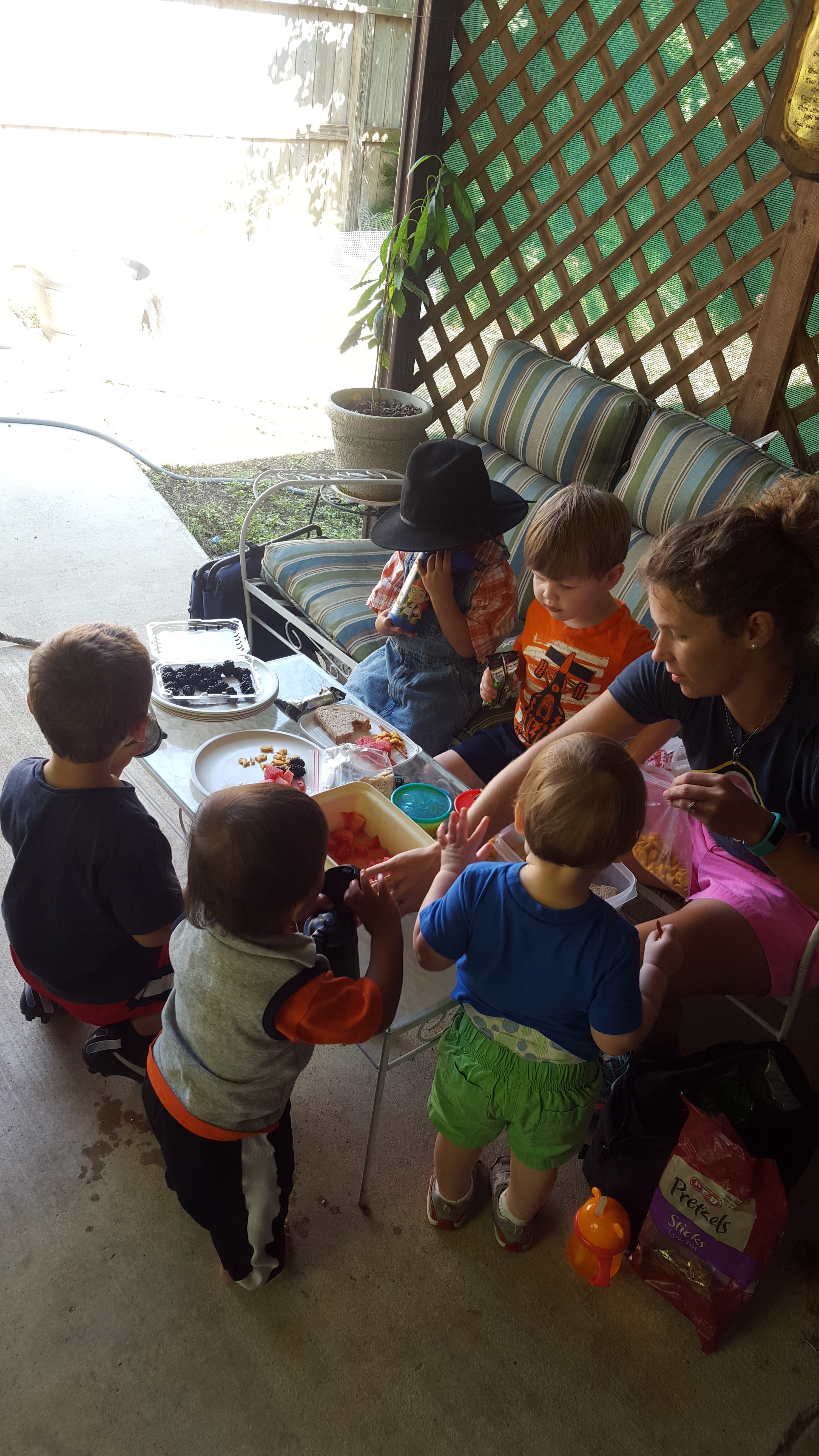 Wednesday was a very social day for me. I talked with several friends (some from half-way around the world) and it was great to catch up with them. Then my friend Abby called- she was on her way to New Braunfels but changed her mind about her destination. She wanted to know if I was up for some visitors. So she and her three kids, along with another two that she watches, came over for the morning. We had a great time! We shared a picnic lunch out on our back patio and then the boys played outside. They chased the neighbor cat (who was REALLY good with them), they swung in our yard swing and kicked the soccer ball around. It was a nice change from the quiet days I’d been having. I needed some social interaction! Plus, those kids are so darn cute. I really had a great time.