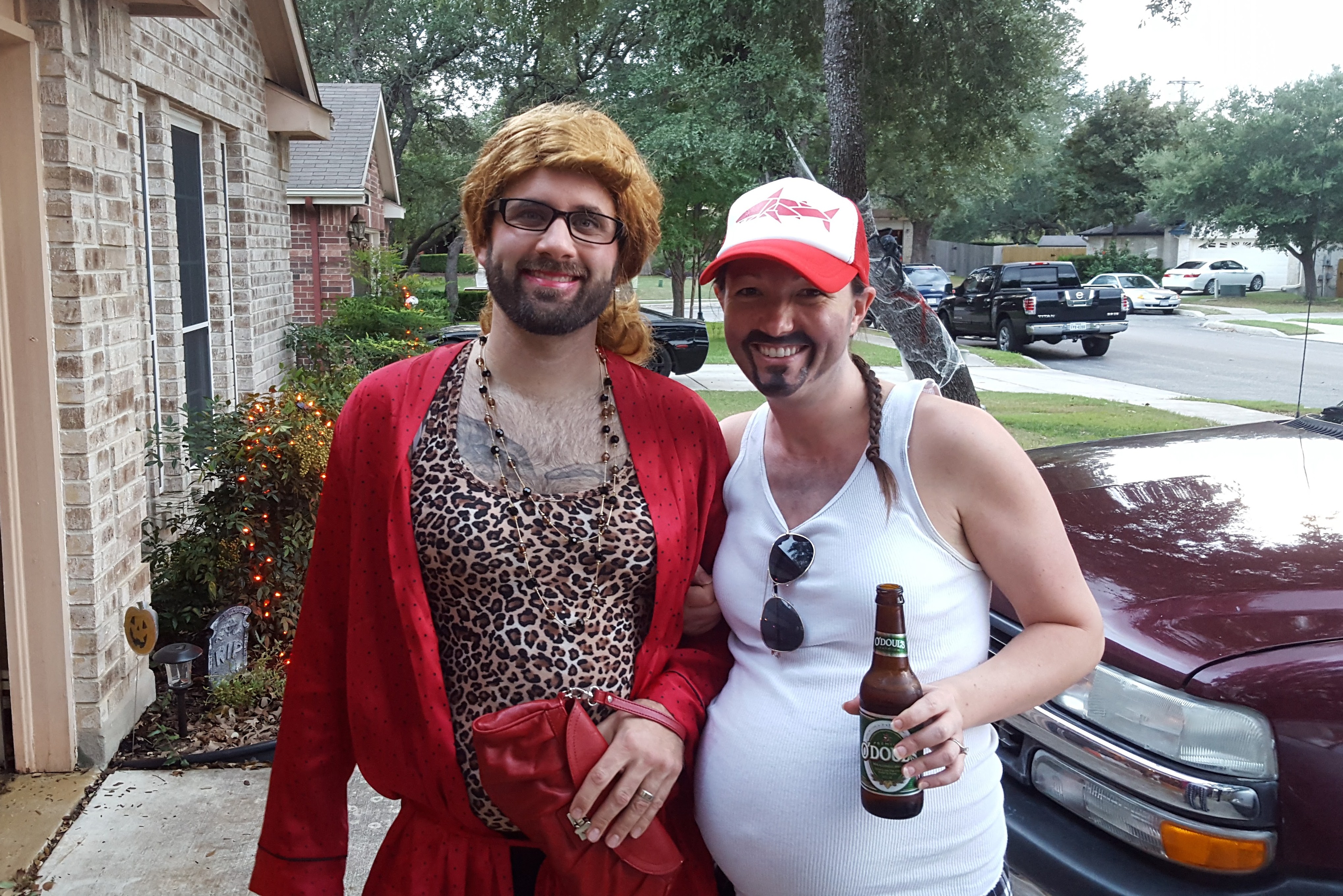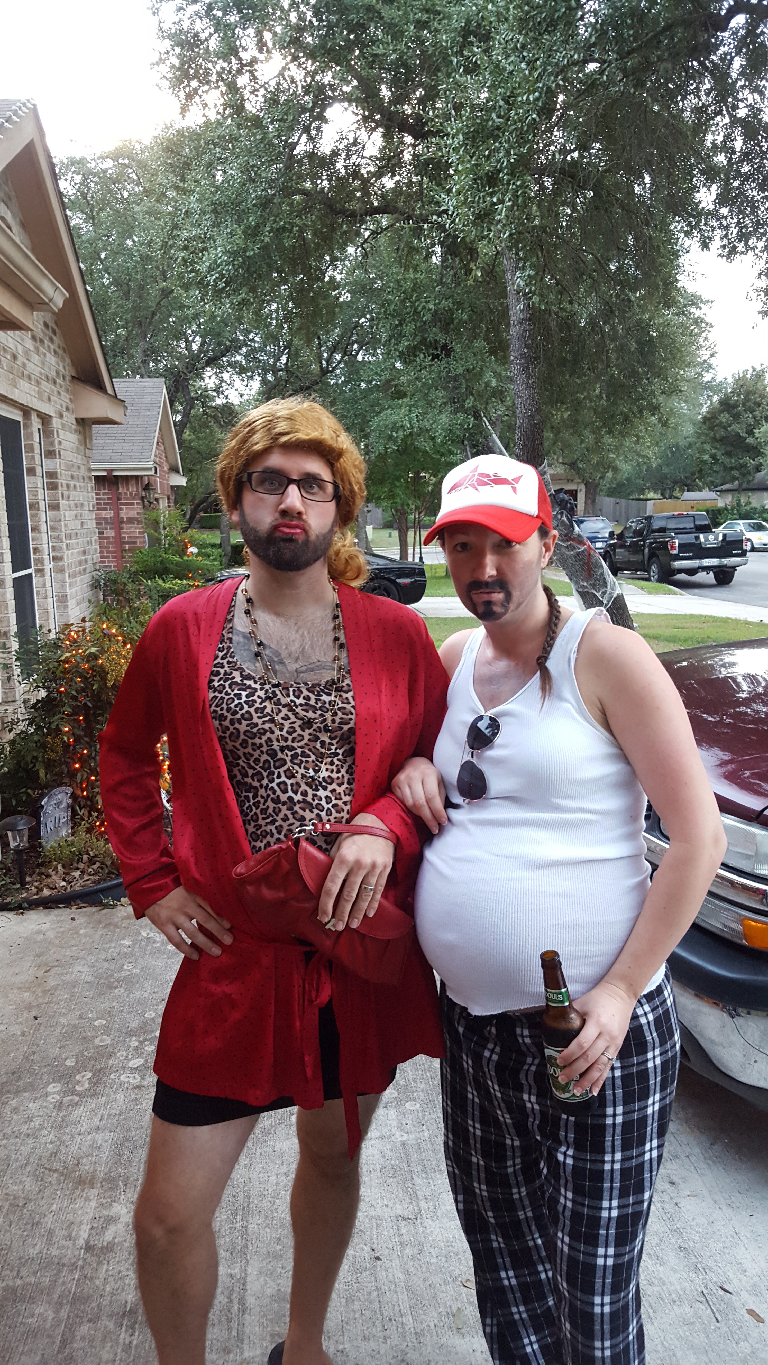 Saturday also came with some Halloween festivities. Trent and I decided to change up the costumes a bit (it’s more fun that way) and this time we exchanged roles as well… I was a white-trash-y, beer-bellied man and Trent was my lady. The reactions to our costumes were pretty priceless, and if I do say so myself, Trent makes a very pretty woman. 😉 We spent the evening with friends and took the kids out trick-or-treating before heading home.