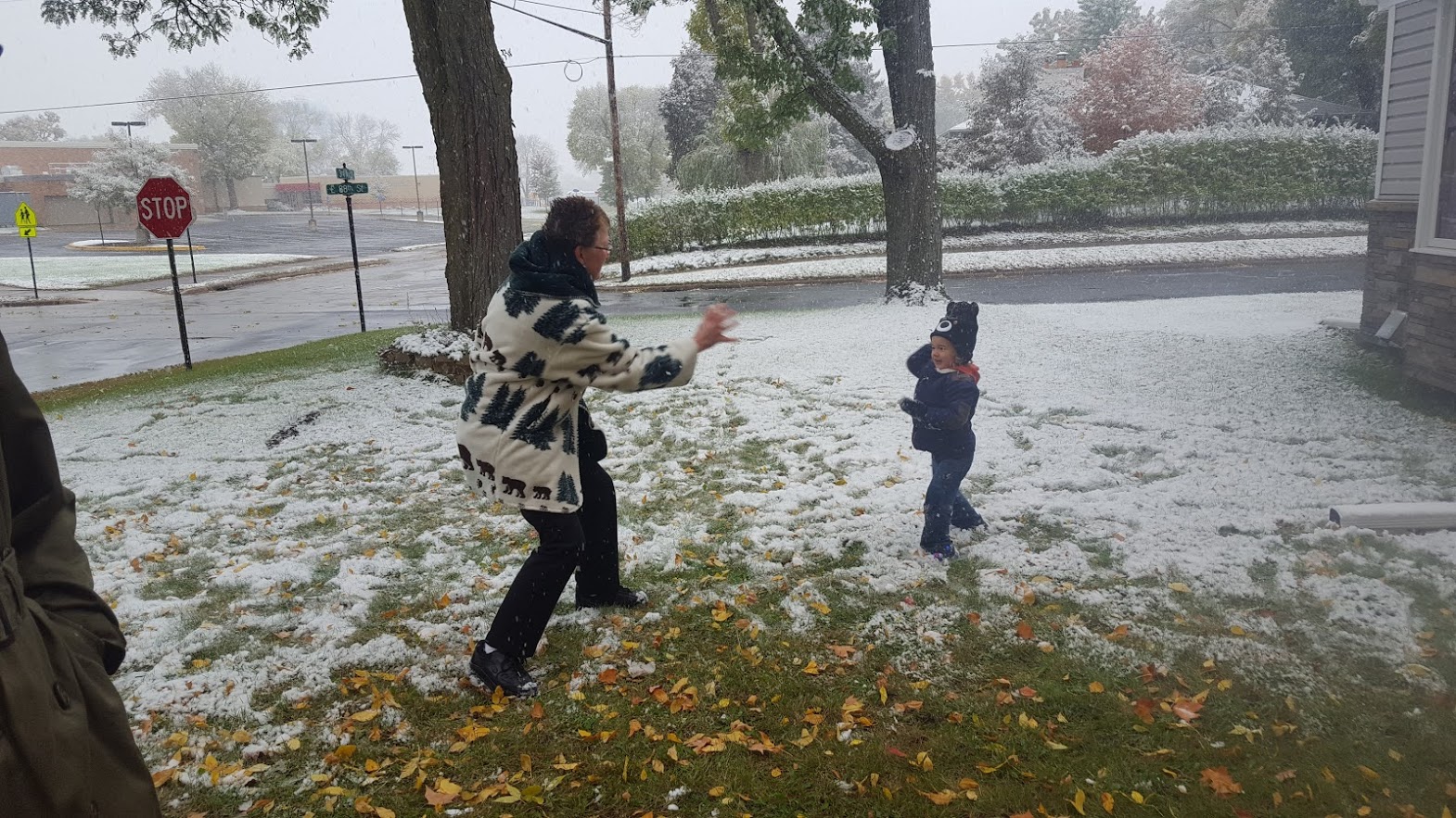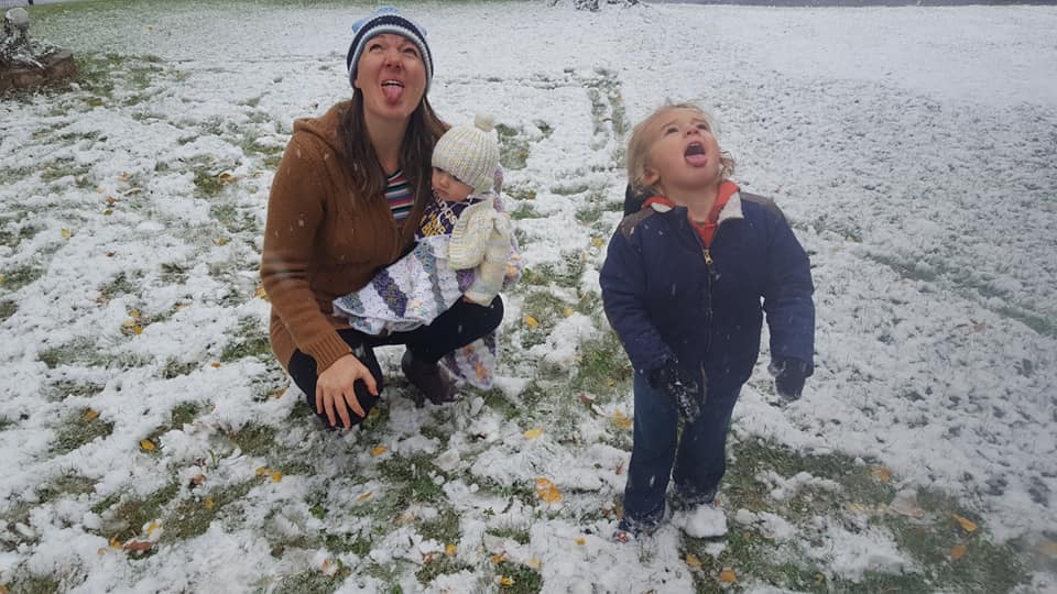 However, despite it only being mid-October, it SNOWED while we were there, which led to a fun snowball fight with Grammy. We were completely unprepared for the cold weather, but Jedi loved it nonetheless.