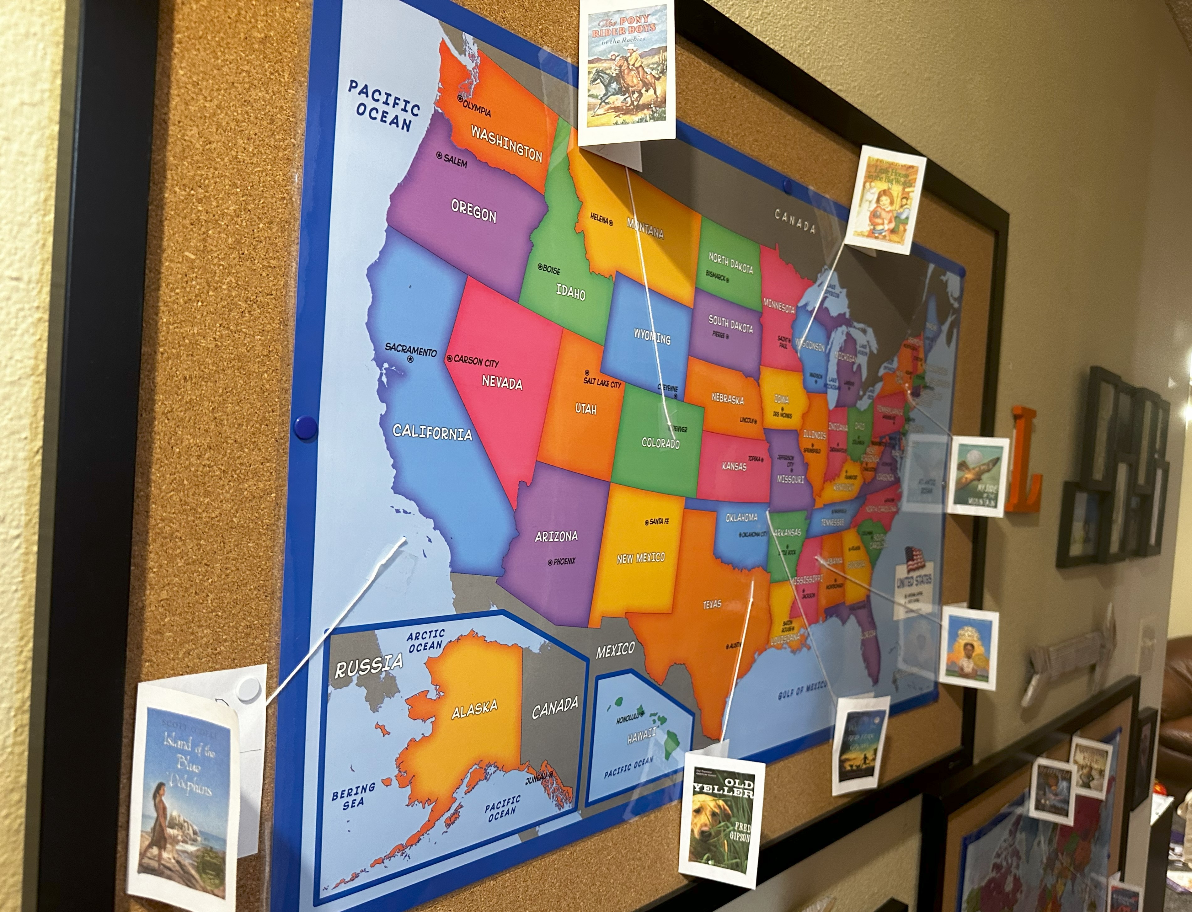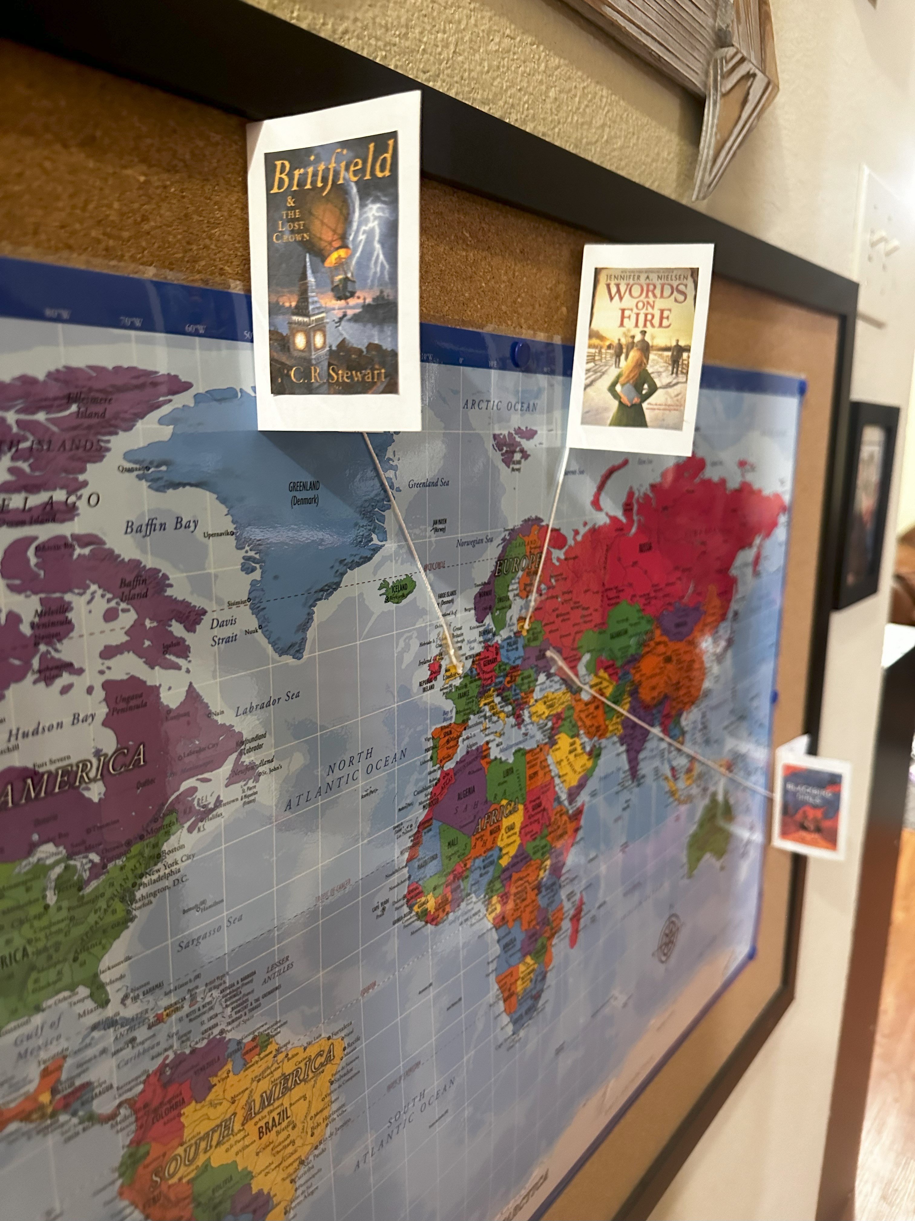 Homeschooling has been a huge blessing to us as well. We spent tons of time outside in nature- journaling and exploring, took so many field trips, read, did presentations, went to the library, planted a garden, sold lemonade, created, baked together and listened to copious amounts of audiobooks. We learned about so many different things through reading- different places- both here and abroad, history (Chernobyl, segregation, book smuggling, frontier living, the monarchy), and have engaged in stories of friendship, bravery and survival. Listening to audiobooks has become our favorite thing to do in the car- and we drive… a lot! We listened to 16 chapter books from late July through the end of the year! One thing I added this year was to our wall maps- any time we read a story about an actual place or event, we add that book to the wall with a string leading to the place that the story was about. Inside each “book” are some of the main things we learned about in that book and a small illustration of one of their favorite parts. I’ve loved doing this with the kiddos!