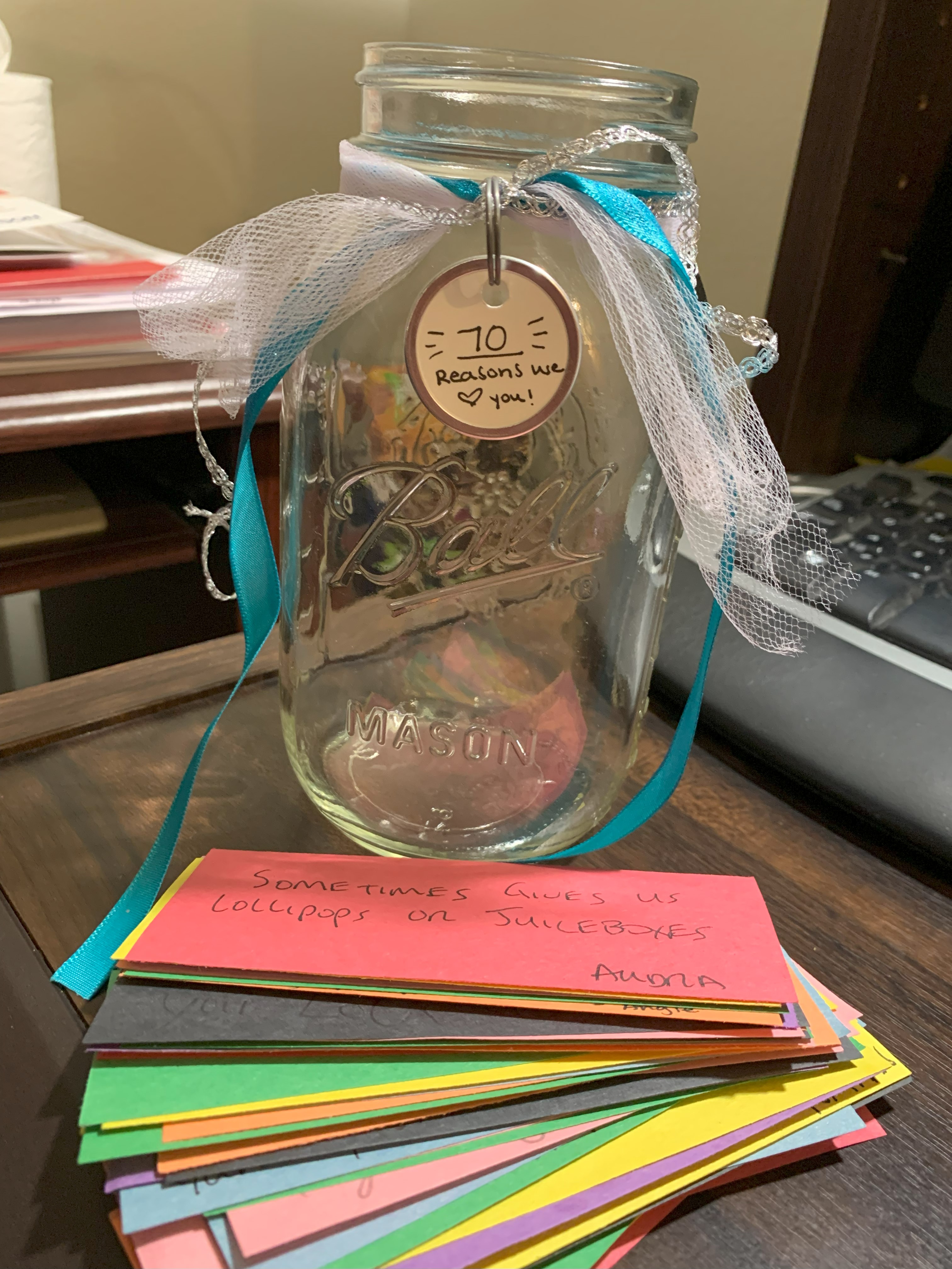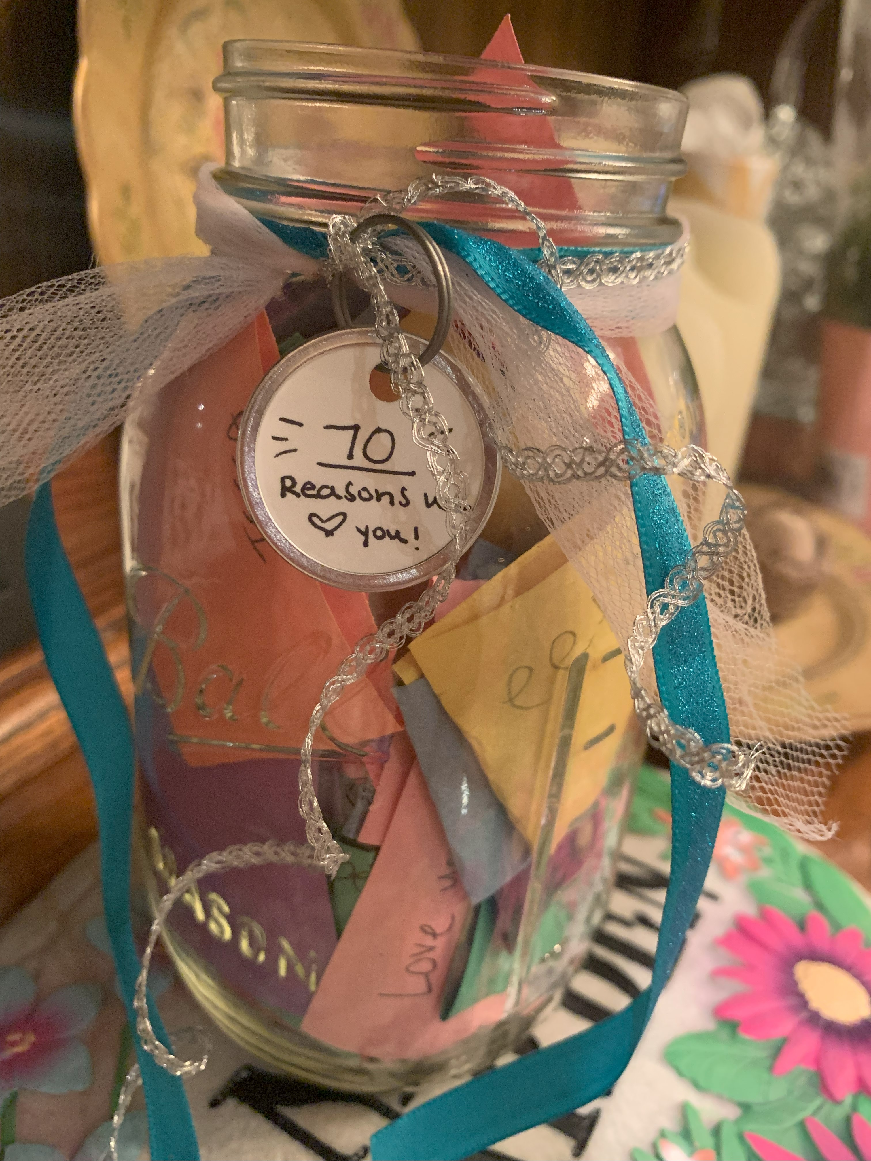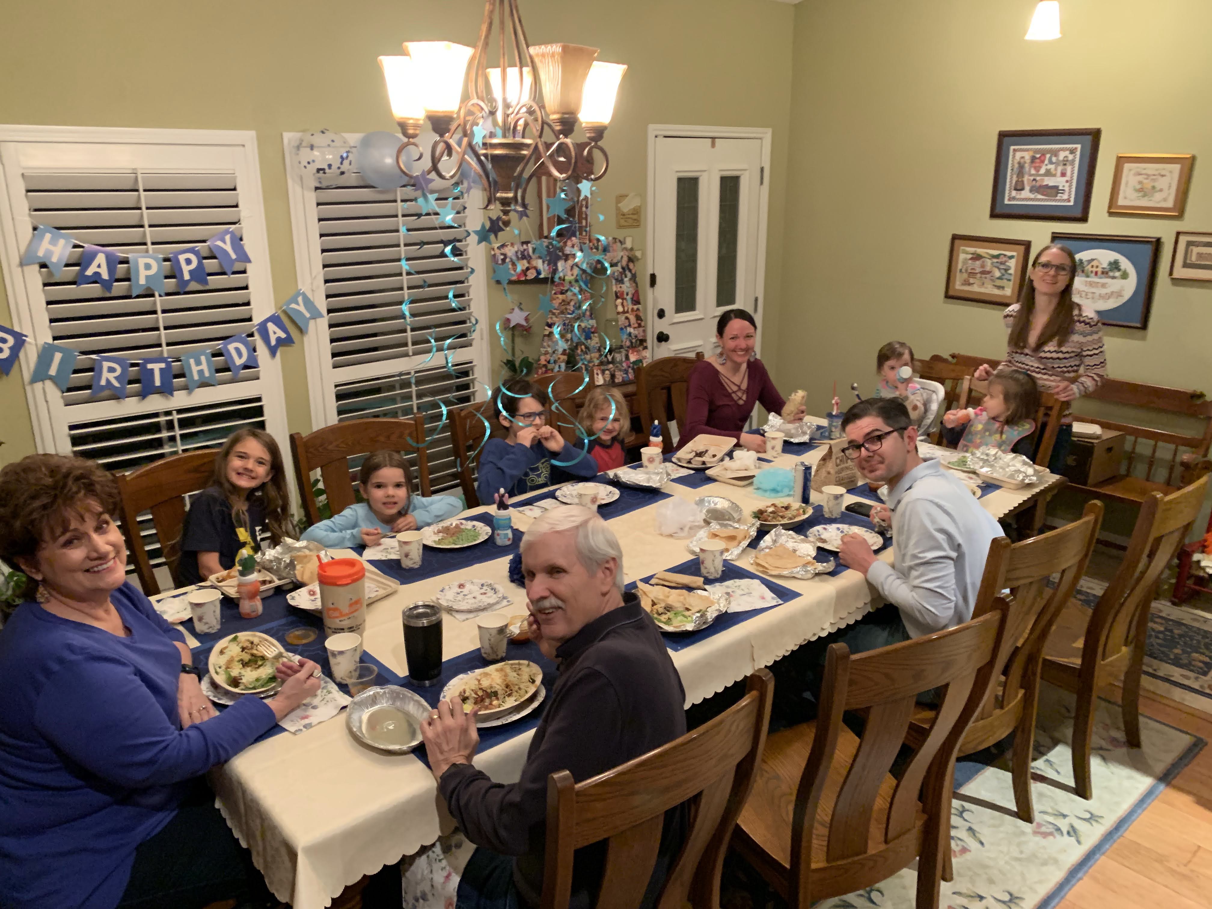 February brought a very special celebration for a very special lady! Trent’s mom, Debbie, turned 70 this year, so we did our best to make it memorable. I went through old photos and found a bunch of her with her kids and lots of her and the grandkids and collaged them all together on big cardboard numbers, 7-0. They turned out great and it was so fun to watch all the grandkids go through the pictures and try to identify which baby was which. We also all wrote things we loved about Nana- 70 of them to be exact- and put them in a jar for her to read and to know and be reminded of how very loved she is!