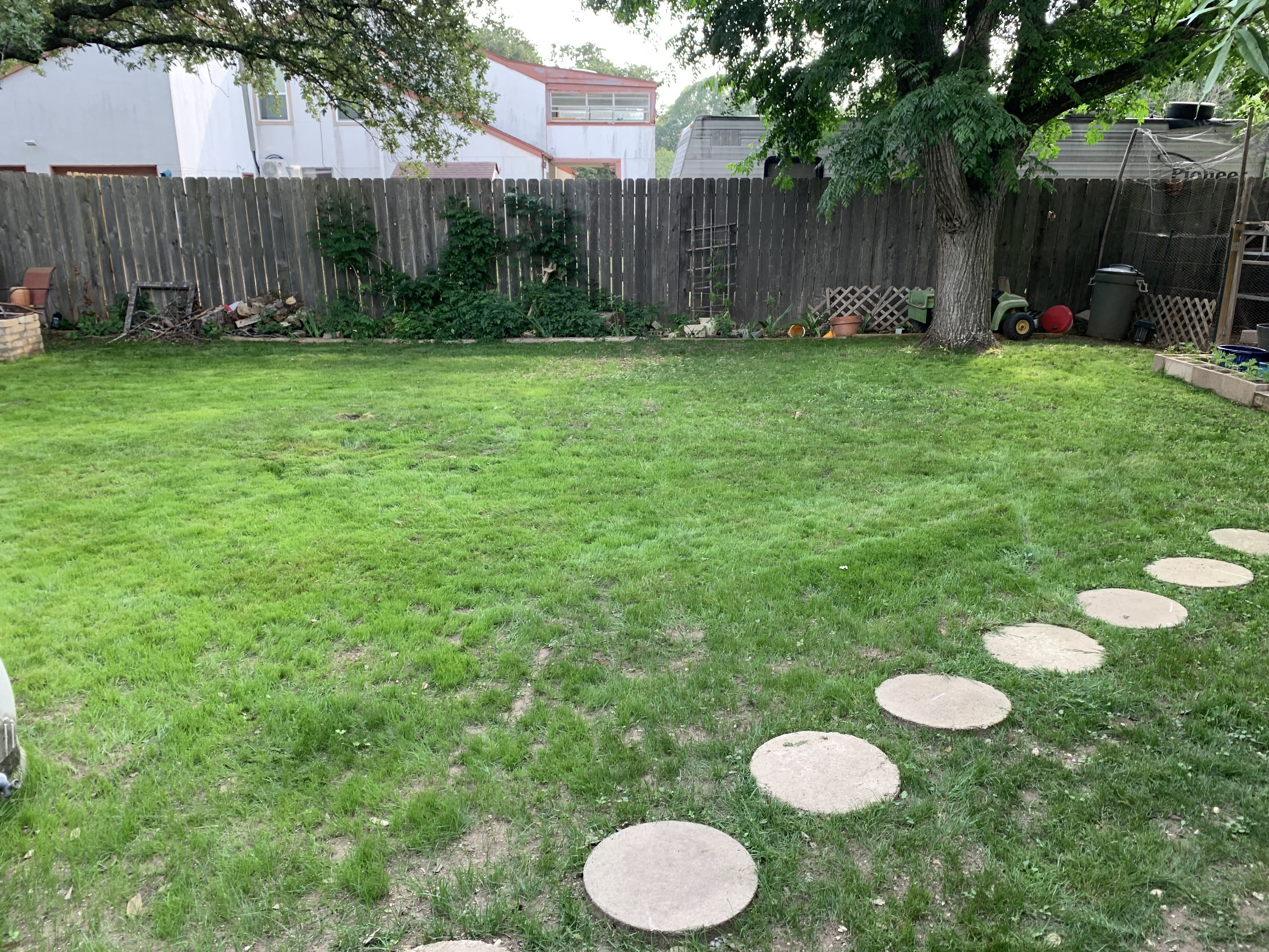 We also tilled the other half of the yard and laid grass seed in the early spring. It took and looked great… for about a month… until summer. Texas summers are just brutal. It didn’t make it. (queue sad music)