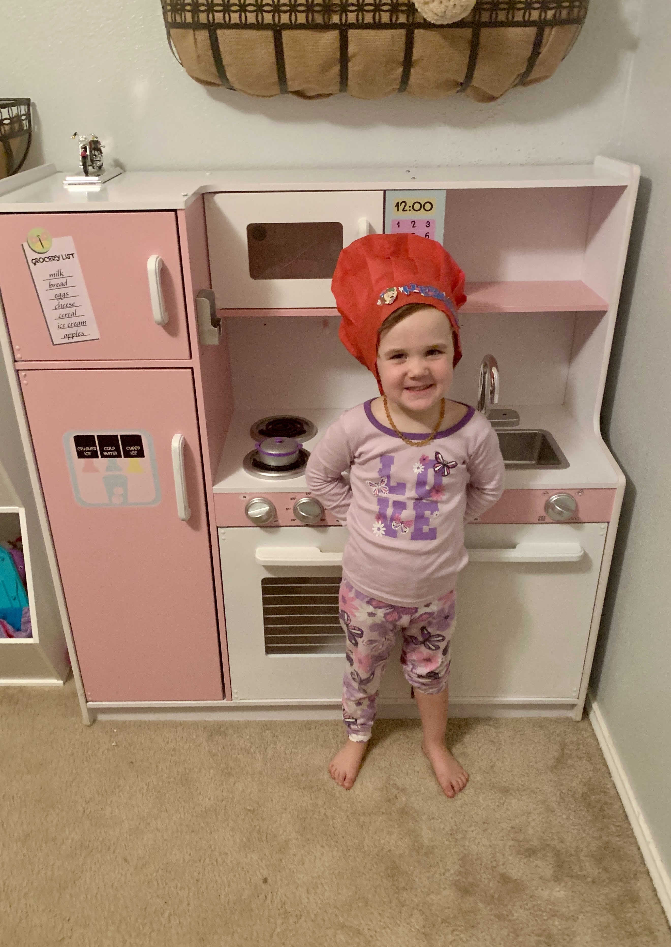 Eliza got some big girl upgrades to her room- she graduated from her crib to a big girl bed and she got a kitchen! She absolutely loves playing with it and is always cooking for us!